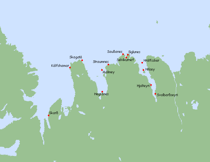 map of Northern Iceland with the lighthouses we visited